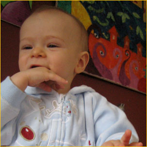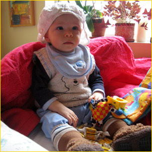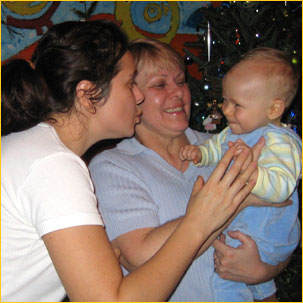 Wyobraźcie sobie pierwszo-widziane święta Adaśkowymi niebieściutkimi oczyma, pełnymi zdziwienia i podziwu… Człowiekowi aż lgnie serce do takiego nieskazitelnie świeżego zachwytu i do śmiechu dziecięcego, który jak szampańskie bąbelki przepełnia duszę po same brzegi. Święta!!! Nasze pierwsze, z raczkującym jak mały nakręcany żuczek i stawiającym już śmiałe kroczki, Adaśkiem. Z rodzinnym Kingston, w noc wigilijną i z domem w Toronto, we trójkę, kameralnie, w pierwsze dni świąteczne… No i z Babcia Mira, i prababcia Helenką w czas miedzy świąteczny, aż po sam Nowy Rok.