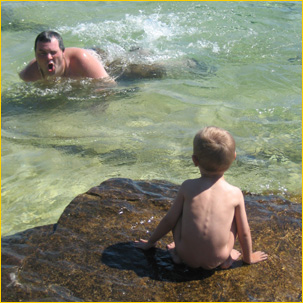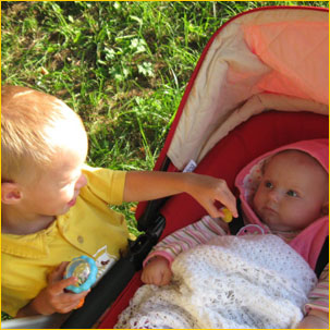 Najpierw, długa kreska spokojnej autostrady rozprostowała się w nieskończoność, a później ciasno wślizgnęła się pomiędzy korzenne kolana cedrowego lasu. Na horyzoncie, na długich rozczapierzonych nogach rozprostowało się słońce. Jego ciepła jasność wychylała się zza świtu wprost na zaspanego buziaka naszego synka. Adaśko, niewzruszony, bacznie sprawdzał świat spod na wpół uchylonych powiek, lekko i leniwie, wystarczająco czujnie aby nie ominąć ważnego wiodku.
