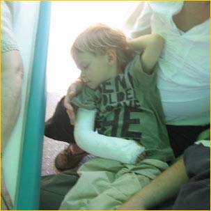 No i się wydarzyło! Pierwsza poważna kontuzja. Temperatura, choroba, chwila nieuwagi, kuchnia, arbuz, lot... BUM! Na początku myśleliśmy że to stłoczenie. W sobotę do doktora moja żonka się udała. Złamanie. Gips... samo życie.