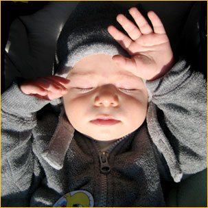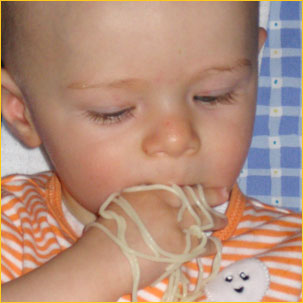 Tuż przed ukończeniem ośmiu miesięcy, Adaśko trzymany za rączki, zaczął uparcie, jak na podhalańskiego baranka przystało, dopominać się obchodu swego domowego królestwa. Wkrótce potem, zaczął podciągać się, na czym to tylko popadło i z dumną miną zdobywcy, komicznie podrygiwać kuperkiem w powietrzu. Niebawem, zaskoczył nas widokiem, który będziemy nieśli w sercach przez resztę życia… Byliśmy już wszyscy w naszym ogromnym rodzinnym łożu, Adaśko po kąpieli, wymasowany i zakonserwowany w kalendulowym olejku, jeszcze pełen werwy, w śmiesznie przydużej piżamce, podrygując jak młody źrebaczek nad brzuchem tatuśka, olśniony nagłym porywem szczęścia stanął samoistnie, zupełnie nie na żarty i jak najbardziej stanowczo! Piskom i okrzykom nie było końca, bo oczywiście Adaś z euforyczną radością głosił całemu światu jak to wspaniale jest móc stać samemu!