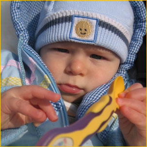 Swym radosnym piskiem, Adaśko budzi nas codziennie do akcji, punkt 7 rano, wiec staramy się pamiętać, że wszystko w życiu człowieka, ma swój czas. I tak, teraz nastał czas nieprzespanych nocy, zakręconych ze zmęczenia głów, czas ząbkowania i łez, które krajają nasze serca w szerz i w poprzek; ale i czas radosnych pisków Pitula, który, jak jakiś mały pisklak, tak słodko cieszy się z każdego rozłożenia skrzydełek i kroku na tych swoich chwiejnych nóżkach.