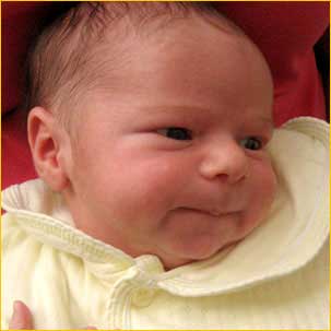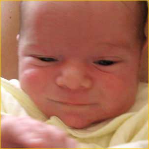 Miny nie z tej ziemi. Adaś za młody żeby potrafił kontrolować swojej twarzy wyraz co przyczyną śmiechu i radości gdy przez sen maluch raz się śmieje nie śmiejąc, raz zamyślony bez myślenia, jeszcze innym razem pełen zdziwienia szeroko otwiera oczyma...