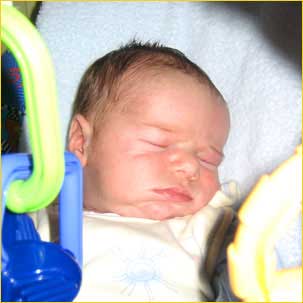 Dwa dzionki temu pierwsza wizyta u przyjaciół. Adaś spal grzecznie, jak większość jego dotychczasowego życia.