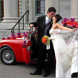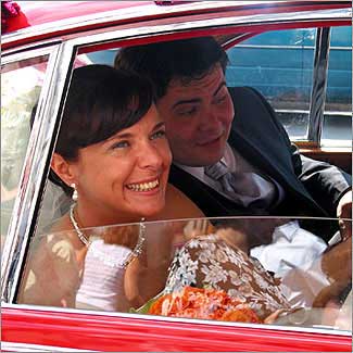 I tak, otoczona łzami emocji i wzruszenia, z sercem chcącym wyrwać się z piersi, młoda panna w rozłożystej sukni została pieczołowicie upchnięta przez babcię i mamę w piękny jaguar w kolorze purpuro, gdzie u boku dwóch świadków umknęła ku swej przyszłości.